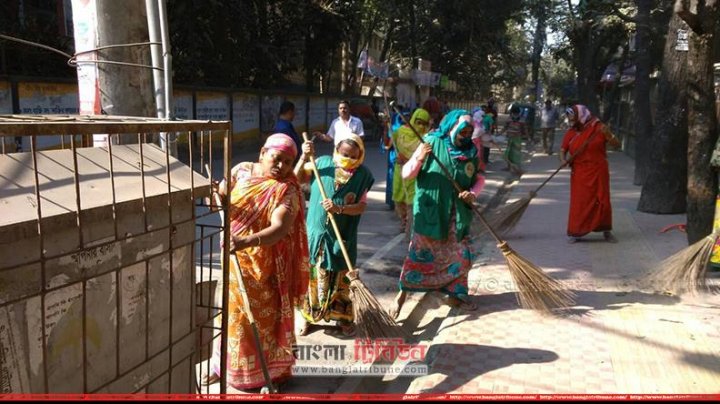 কর্মব্যস্ত পরিচ্ছন্নতাকর্মীরা