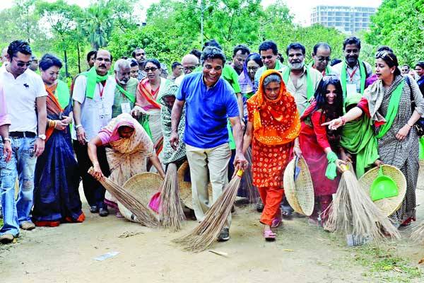 গতকাল আনিসুল হকের পরিচ্ছন্ন ঢাকা কর্মসূচিতে হাজির হয়েছিল পরিচ্ছন্নতাকর্মী মনি বেগম, শিরিনা আক্তার, ফয়জুন্নেসা বেগমসহ ১০ জনের একটি দলও। ঝাড়ু আর বেলচা হাতে নিয়ে তাঁরা অভিনয়শিল্পীদের পাশেই ছিলেন।