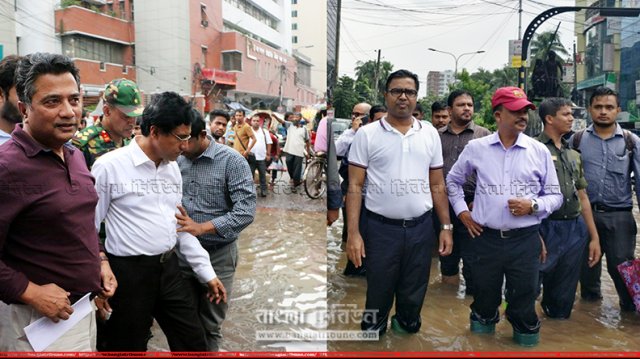 রাজধানীর রাজপথে পানি, পরিদর্শনে ঢাকা উত্তর সিটি করপোরেশনের মেয়র আনিসুল হক