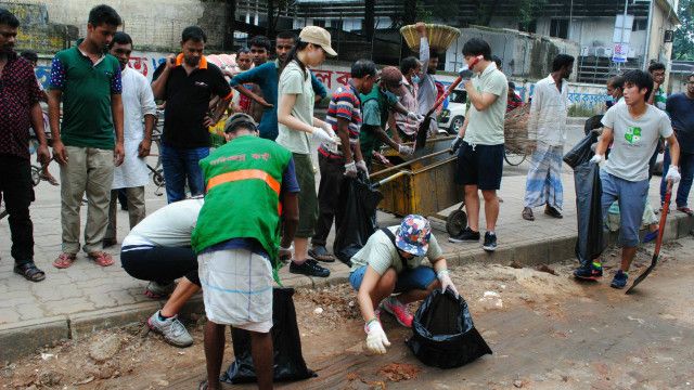 ঢাকার রাস্তা পরিস্কারে নেমেছেন বিদেশিরা। সঙ্গে যোগ দিয়েছেন স্থানীয়রাও।