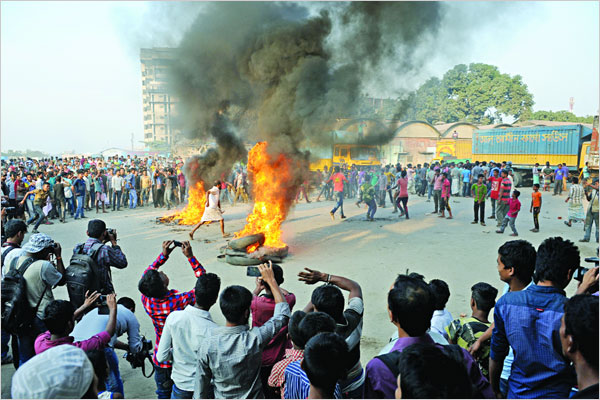 টিয়ার গ্যাসের শেল ও ছররা গুলি ছুড়তে শুরু করে। এতে জসিম উদ্দিন নামের এক কাভার্ড ভ্যানচালক আহত হন। আহত শ্রমিকের মৃত্যুর গুজব ছড়িয়ে পরিস্থিতি আরো উত্তপ্ত করে তোলে শ্রমিকরা। এ সময় গণমাধ্যমকর্মীরাও বিক্ষুব্ধ শ্রমিকদের রোষানলে পড়েন। এভাবে দুপুর পৌনে ২টা থেকে বিকেল ৫টা পর্যন্ত পুরো তেজগাঁও এলাকা অশান্ত হয়ে ওঠে। আর এর প্রভাবে রাজধানীর বিভিন্ন সড়কে তীব্র যানজট ছড়িয়ে পড়ে।