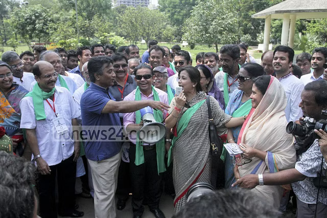 Actors ATM Shamsuzzaman, Ramendu Majumdar, Piyush Bandopadhyay, Shahidul Alam Sachchu and actresses Tarana Halim, Sharmili Ahmed and Tamalika Karmakar were among those who campaigned for the Awami League-backed candidate.