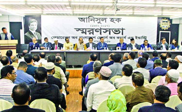 A memorial discussion was organized by the Federation of Bangladesh Chambers of Commerce and Industry (FBCCI) at its auditorium in the city yesterday on occasion of first death anniversary of Dhaka North City Corporation mayor Annisul Huq. – AA