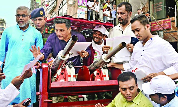 After regretting previous comment on Chikungunya outbreak in the capital, Dhaka North City Corporation (DNCC) Mayor Annisul Huq appeared with cannon-like fogger machine. The mayor led an awareness campaign in city’s Mohammadpur area yesterday and he also was found taking part in the anti-mosquito crush program.