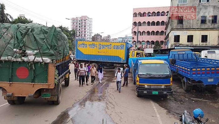 Trucks, covered vans, pick-ups and other similar transports are parked on these roads which pose severe complications to traffic movement from Sat Rasta Square to Tejgaon rail crossing areas. For this reason, traffic jam takes place every now and then on these roads.