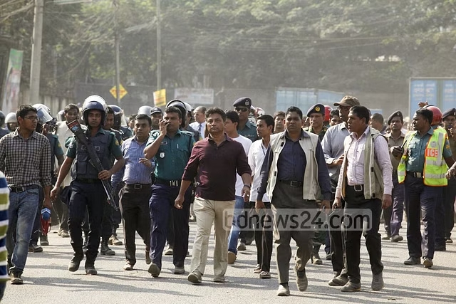 bdnews24.com Staff Correspondent Ashik Hossain, who was on the scene, said agitated truck workers and local people started hurling brickbats at the law enforcers around 1:30pm.