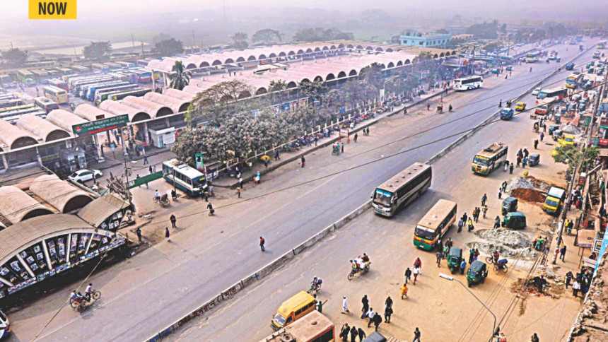 There are hundreds of bus counters at Shyamoli, Kalyanpur and Gabtoli Bus Terminal from where buses set off for different districts across the country. And the road, more often than not, remained clogged with these buses, as the bus owners occupied two-thirds of the road by parking their vehicles there.
